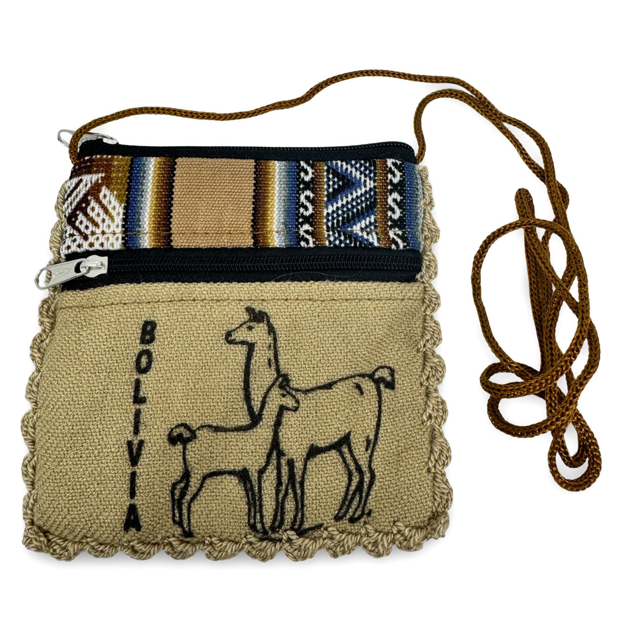 Este encantador monedero de tela combina la artesanía tradicional boliviana con un diseño práctico. El motivo de llama, diseñado con cariño, se realza con una cinta tejida Awayu auténtica: un símbolo de la cultura andina.